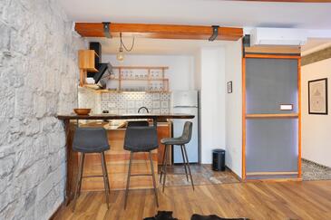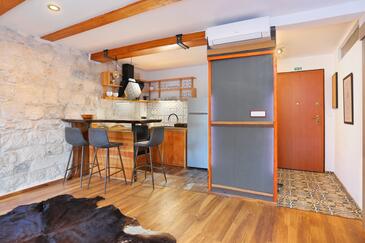 Ferienwohnung bietet Platz für 4 Gäste. Die Betten sind in Schlafzimmern, die es 2 gibt, innerhalb einer Gesamtfläche von 58m2, angeordnet. Die Gäste haben einen eigenen Balkon zur Verfügung, auf der sie in warmen Sommernächten genießen können. In der gebuchten Unterkunftseinheit zahlt man am Ort ein Depositum ( der Preis ist an der Internetseite angeführt ).