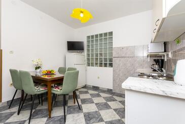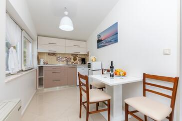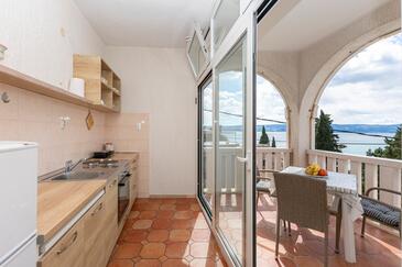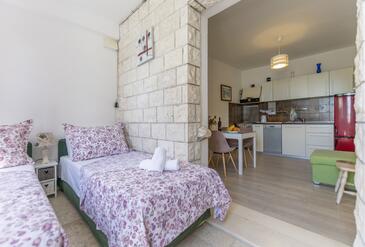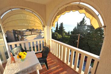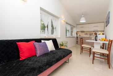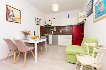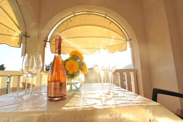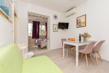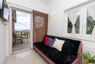 Ferienwohnung bietet Platz für 5 Gäste. Die Betten sind in Schlafzimmern, die es 1 gibt, und in Wohnzimmer, innerhalb einer Gesamtfläche von 46m2, angeordnet. Die Gäste haben eine eigene Terrasse zur Verfügung, auf der sie in warmen Sommernächten genießen können. Das Apartment bietet Meerblick.