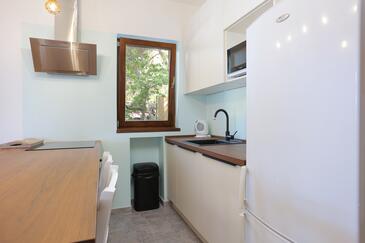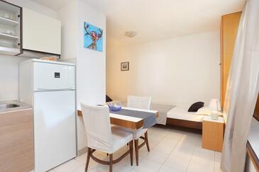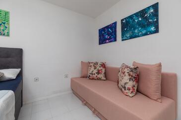 Ferienwohnung bietet Platz für 6 Gäste. Die Betten sind in Schlafzimmern, die es 2 gibt, und in Wohnzimmer, innerhalb einer Gesamtfläche von 43m2, angeordnet. Die Gäste haben eine eigene Terrasse zur Verfügung, auf der sie in warmen Sommernächten genießen können. Für vollen Genuss und Entspannung gibt es einen privaten Grill für Gäste dieser Unterkunft. In der Unterkunftseinheit besteht die Möglichkeit des Mitbringens von Haustieren gegen Aufpreis.