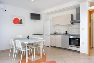 Ferienwohnung bietet Platz für 5 Gäste. Die Betten sind in Schlafzimmern, die es 1 gibt, und in Wohnzimmer, innerhalb einer Gesamtfläche von 49m2, angeordnet. Die Gäste haben eine eigene Terrasse zur Verfügung, auf der sie in warmen Sommernächten genießen können. Das Apartment bietet Meerblick. Es ist erlaubt, Speisen auf dem Gemeinschafts-Grill vorzubereiten.