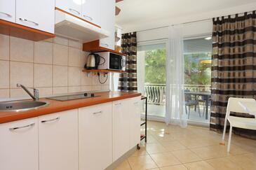 Ferienwohnung bietet Platz für 4 Gäste. Die Betten sind in Schlafzimmern, die es 1 gibt, und in Wohnzimmer, innerhalb einer Gesamtfläche von 40m2, angeordnet. Die Gäste haben eine eigene Terrasse zur Verfügung, auf der sie in warmen Sommernächten genießen können. Das Apartment bietet Meerblick. Es ist erlaubt, Speisen auf dem Gemeinschafts-Grill vorzubereiten.