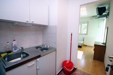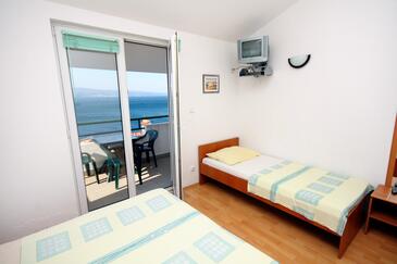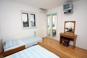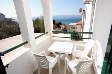 Ferienwohnung bietet Platz für 4 Gäste. Die Betten sind in Schlafzimmern, die es 1 gibt, und in Esszimmer, innerhalb einer Gesamtfläche von 27m2, angeordnet. Die Gäste haben eine eigene Terrasse zur Verfügung, auf der sie in warmen Sommernächten genießen können. Das Apartment bietet Meerblick. Es ist erlaubt, Speisen auf dem Gemeinschafts-Grill vorzubereiten.