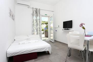 Ferienwohnung bietet Platz für 4 Gäste. Die Betten sind in Schlafzimmern, die es 1 gibt, und in Wohnzimmer, innerhalb einer Gesamtfläche von 27m2, angeordnet. Das Apartment bietet Meerblick. Es ist erlaubt, Speisen auf dem Gemeinschafts-Grill vorzubereiten. Die reservierte Unterkunftseinheit verfügt über einen gemeinsame Terrasse.