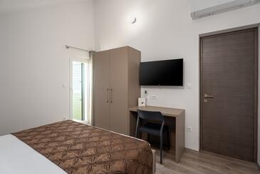 Ferienwohnung bietet Platz für 6 Gäste. Die Betten sind in Schlafzimmern, die es 3 gibt, innerhalb einer Gesamtfläche von 67m2, angeordnet. Die Gäste haben einen eigenen Balkon zur Verfügung, auf der sie in warmen Sommernächten genießen können. Das Apartment bietet Meerblick. Es ist erlaubt, Speisen auf dem Gemeinschafts-Grill vorzubereiten.