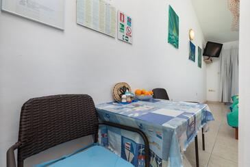 Studio bietet Platz für 3 Gäste. Die Betten sind in Schlafzimmern, die es 1 gibt, innerhalb einer Gesamtfläche von 21m2, angeordnet. Die Gäste haben eine eigene Terrasse zur Verfügung, auf der sie in warmen Sommernächten genießen können. Das Studio-Apartment bietet Meerblick. Es ist erlaubt, Speisen auf dem Gemeinschafts-Grill vorzubereiten.