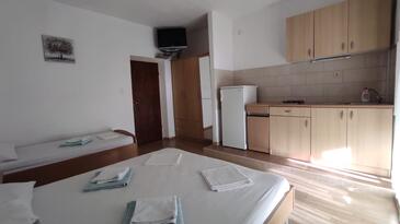 Studio bietet Platz für 3 Gäste. Die Betten sind in Schlafzimmern, die es 1 gibt, innerhalb einer Gesamtfläche von 19m2, angeordnet. Die Gäste haben einen eigenen Balkon zur Verfügung, auf der sie in warmen Sommernächten genießen können.