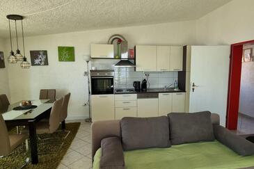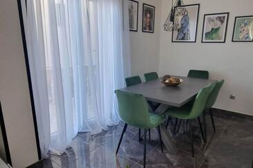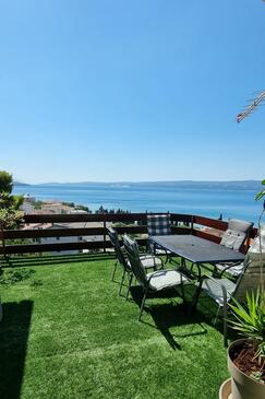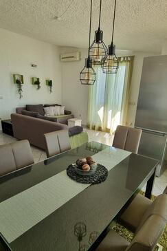 Ferienwohnung bietet Platz für 6 Gäste. Die Betten sind in Schlafzimmern, die es 3 gibt, innerhalb einer Gesamtfläche von 80m2, angeordnet. Die Gäste haben einen eigenen Balkon zur Verfügung, auf der sie in warmen Sommernächten genießen können. Das Apartment bietet Meerblick. Es ist erlaubt, Speisen auf dem Gemeinschafts-Grill vorzubereiten. In der Unterkunftseinheit besteht die Möglichkeit des Mitbringens von Haustieren, und die Dienstleistung ist im Preis der Unterkunft enthalten.