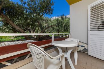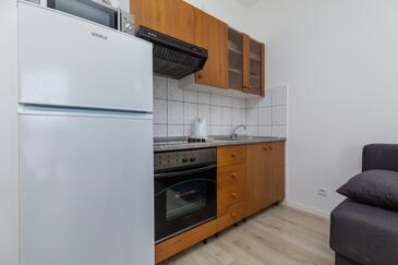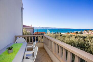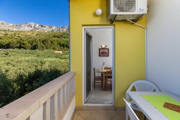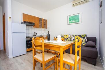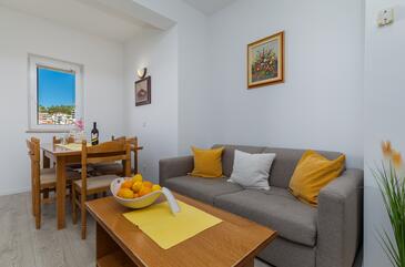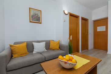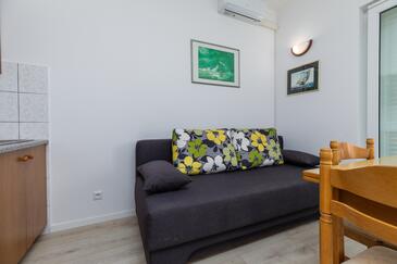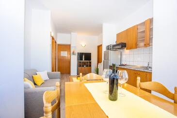 Ferienwohnung bietet Platz für 6 Gäste. Die Betten sind in Schlafzimmern, die es 2 gibt, und in Wohnzimmer, innerhalb einer Gesamtfläche von 49m2, angeordnet. Die Gäste haben einen eigenen Balkon zur Verfügung, auf der sie in warmen Sommernächten genießen können. Das Apartment bietet Meerblick. Es ist erlaubt, Speisen auf dem Gemeinschafts-Grill vorzubereiten.