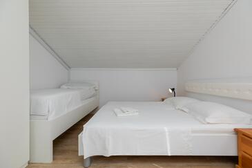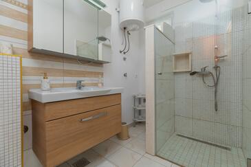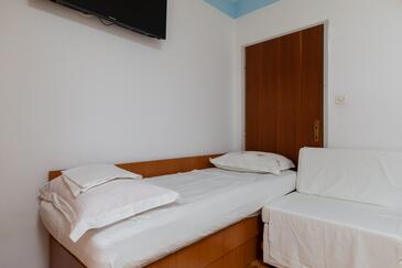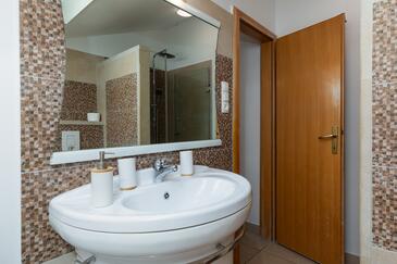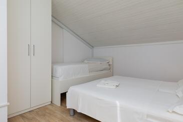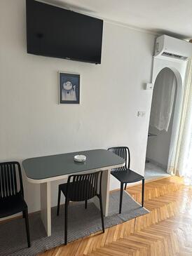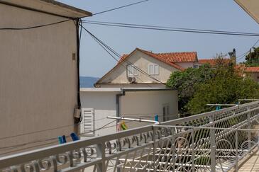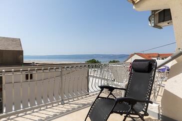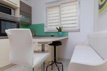 Ferienwohnung bietet Platz für 7 Gäste. Die Betten sind in Schlafzimmern, die es 2 gibt, innerhalb einer Gesamtfläche von 48m2, angeordnet. Die Gäste haben eine eigene Terrasse zur Verfügung, auf der sie in warmen Sommernächten genießen können. Das Apartment bietet Meerblick. Es ist erlaubt, Speisen auf dem Gemeinschafts-Grill vorzubereiten.
