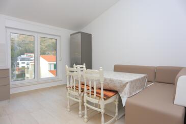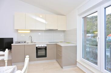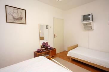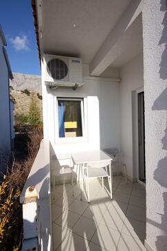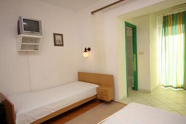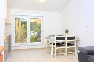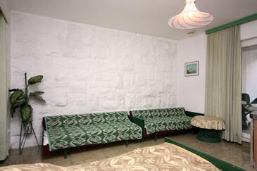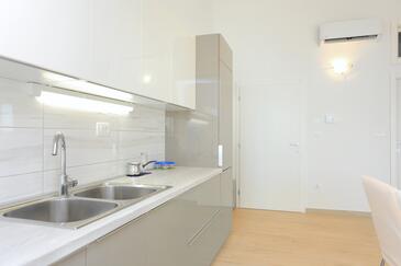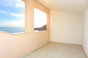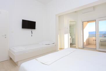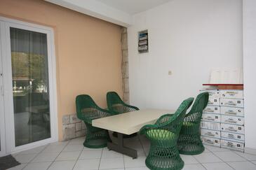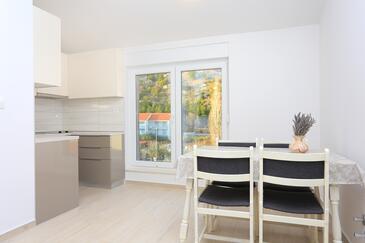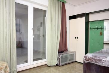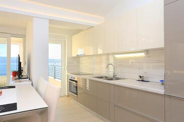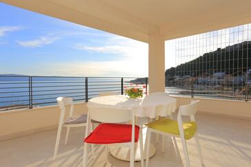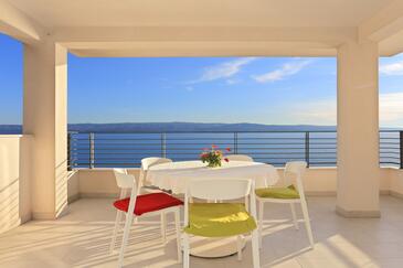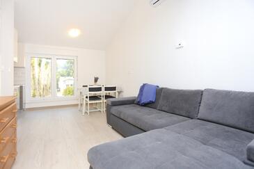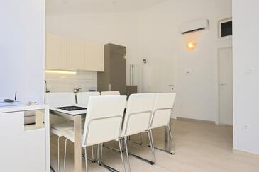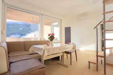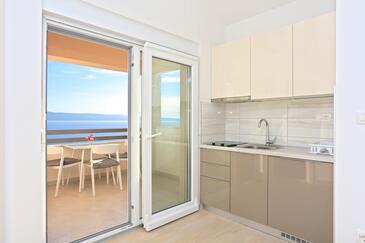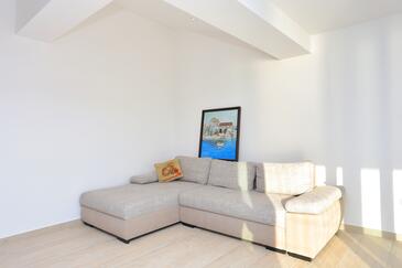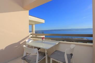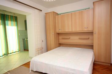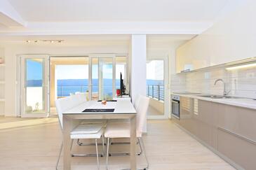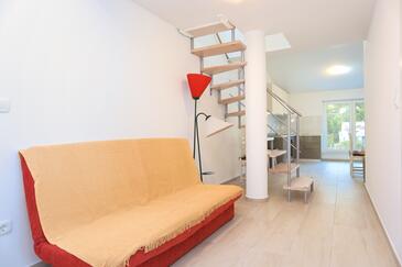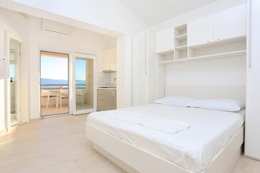 Ferienwohnung bietet Platz für 4 Gäste. Die Betten sind in Schlafzimmern, die es 1 gibt, und in Wohnzimmer, innerhalb einer Gesamtfläche von 47m2, angeordnet. Die Gäste haben eine eigene Terrasse zur Verfügung, auf der sie in warmen Sommernächten genießen können. Das Apartment bietet Meerblick. Es ist erlaubt, Speisen auf dem Gemeinschafts-Grill vorzubereiten.