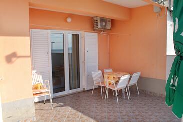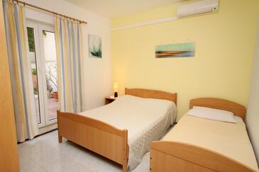 Ferienwohnung bietet Platz für 3 Gäste. Die Betten sind in Schlafzimmern, die es 1 gibt, innerhalb einer Gesamtfläche von 29m2, angeordnet. Die Gäste haben eine eigene Terrasse zur Verfügung, auf der sie in warmen Sommernächten genießen können. Das Apartment bietet Meerblick. Es ist erlaubt, Speisen auf dem Gemeinschafts-Grill vorzubereiten.