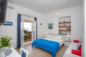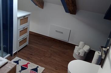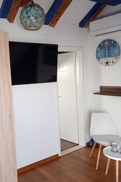 Ferienwohnung bietet Platz für 6 Gäste. Die Betten sind in Schlafzimmern, die es 3 gibt, innerhalb einer Gesamtfläche von 85m2, angeordnet. Die Gäste haben eine eigene Terrasse zur Verfügung, auf der sie in warmen Sommernächten genießen können. Das Apartment bietet Meerblick. Es ist erlaubt, Speisen auf dem Gemeinschafts-Grill vorzubereiten. Durch die Terrasse der gebuchten Unterkunftseinheit gehen auch andere Gäste oder Vermieter. Unterkunftseinheit hat Räume, die von dem Rest der Einheit abgetrennt werden.