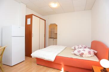 Studio bietet Platz für 3 Gäste. Die Betten sind in Schlafzimmern, die es 1 gibt, und in Wohnzimmer, innerhalb einer Gesamtfläche von 23m2, angeordnet. Die Gäste haben eine eigene Terrasse zur Verfügung, auf der sie in warmen Sommernächten genießen können. Es ist erlaubt, Speisen auf dem Gemeinschafts-Grill vorzubereiten.