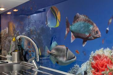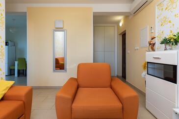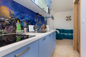 Ferienwohnung bietet Platz für 4 Gäste. Die Betten sind in Schlafzimmern, die es 1 gibt, und in Wohnzimmer, innerhalb einer Gesamtfläche von 46m2, angeordnet. Die Gäste haben einen eigenen Balkon zur Verfügung, auf der sie in warmen Sommernächten genießen können. Das Apartment bietet Meerblick. Es ist erlaubt, Speisen auf dem Gemeinschafts-Grill vorzubereiten.