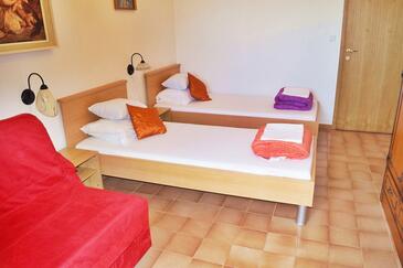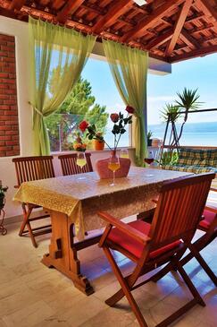 Ferienwohnung bietet Platz für 5 Gäste. Die Betten sind in Schlafzimmern, die es 2 gibt, innerhalb einer Gesamtfläche von 52m2, angeordnet. Die Gäste haben eine eigene Terrasse zur Verfügung, auf der sie in warmen Sommernächten genießen können. Das Apartment bietet Meerblick.