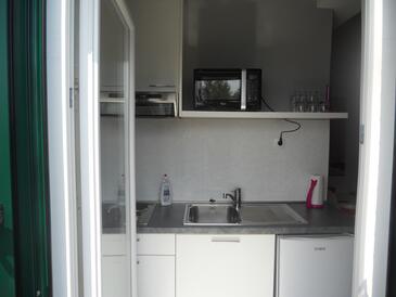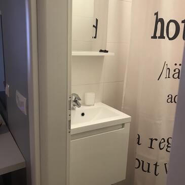 Studio bietet Platz für 3 Gäste. Die Betten sind in Schlafzimmern, die es 1 gibt, innerhalb einer Gesamtfläche von 24m2, angeordnet. Die Gäste haben einen eigenen Balkon zur Verfügung, auf der sie in warmen Sommernächten genießen können. Das Studio-Apartment bietet Meerblick. Es ist erlaubt, Speisen auf dem Gemeinschafts-Grill vorzubereiten.