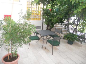 Studio bietet Platz für 3 Gäste. Die Betten sind in Schlafzimmern, die es 1 gibt, innerhalb einer Gesamtfläche von 24m2, angeordnet. Die Gäste haben einen eigenen Balkon zur Verfügung, auf der sie in warmen Sommernächten genießen können. Das Studio-Apartment bietet Meerblick. Es ist erlaubt, Speisen auf dem Gemeinschafts-Grill vorzubereiten.