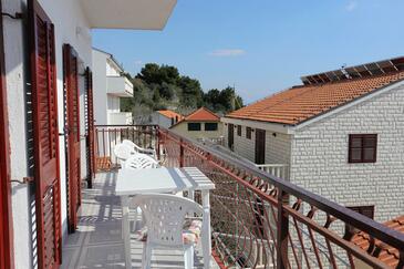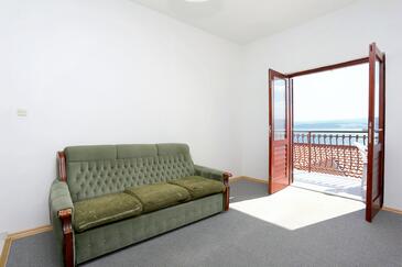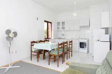 Ferienwohnung bietet Platz für 6 Gäste. Die Betten sind in Schlafzimmern, die es 3 gibt, innerhalb einer Gesamtfläche von 79m2, angeordnet. Die Gäste haben einen eigenen Balkon zur Verfügung, auf der sie in warmen Sommernächten genießen können. Das Apartment bietet Meerblick. Es ist erlaubt, Speisen auf dem Gemeinschafts-Grill vorzubereiten.