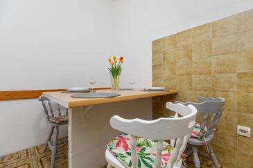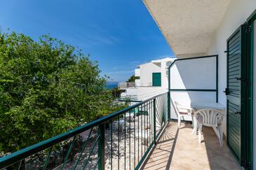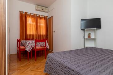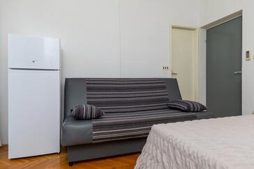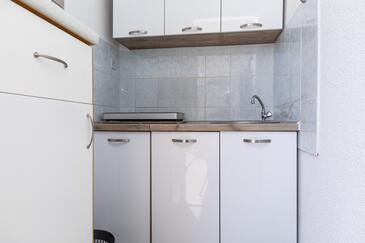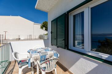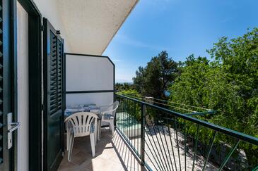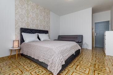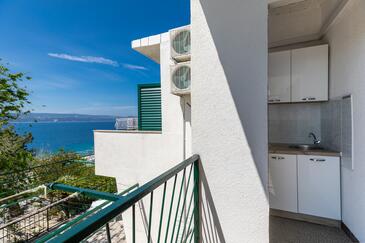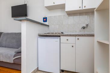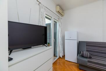 Studio bietet Platz für 4 Gäste. Die Betten sind in Schlafzimmern, die es 1 gibt, innerhalb einer Gesamtfläche von 26m2, angeordnet. Die Gäste haben einen eigenen Balkon zur Verfügung, auf der sie in warmen Sommernächten genießen können. Das Studio-Apartment bietet Meerblick. Es ist erlaubt, Speisen auf dem Gemeinschafts-Grill vorzubereiten.