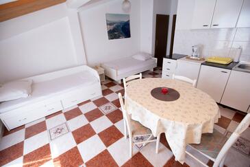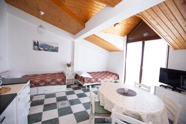 Ferienwohnung bietet Platz für 4 Gäste. Die Betten sind in Schlafzimmern, die es 1 gibt, und in Wohnzimmer, innerhalb einer Gesamtfläche von 71m2, angeordnet. Die Gäste haben eine eigene Terrasse zur Verfügung, auf der sie in warmen Sommernächten genießen können. Das Apartment bietet Meerblick. Es ist erlaubt, Speisen auf dem Gemeinschafts-Grill vorzubereiten. In der Unterkunftseinheit besteht die Möglichkeit des Mitbringens von Haustieren, und die Dienstleistung ist im Preis der Unterkunft enthalten.