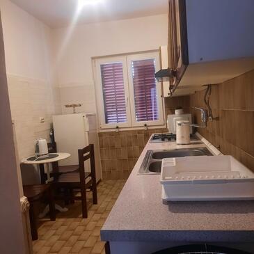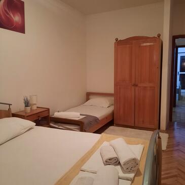 Ferienwohnung bietet Platz für 11 Gäste. Die Betten sind in Schlafzimmern, die es 4 gibt, innerhalb einer Gesamtfläche von 110m2, angeordnet. Die Gäste haben eine eigene Terrasse zur Verfügung, auf der sie in warmen Sommernächten genießen können. Das Apartment bietet Meerblick. Es ist erlaubt, Speisen auf dem Gemeinschafts-Grill vorzubereiten.