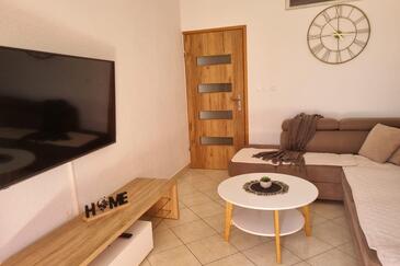 Ferienwohnung bietet Platz für 6 Gäste. Die Betten sind in Schlafzimmern, die es 2 gibt, und in Wohnzimmer, innerhalb einer Gesamtfläche von 72m2, angeordnet. Die Gäste haben eine eigene Terrasse zur Verfügung, auf der sie in warmen Sommernächten genießen können. Das Apartment bietet Meerblick. Es ist erlaubt, Speisen auf dem Gemeinschafts-Grill vorzubereiten.
