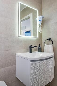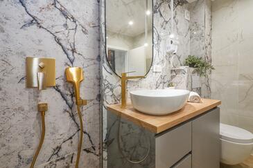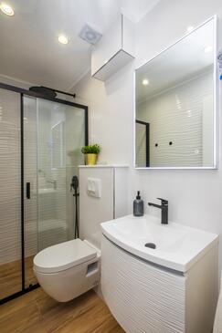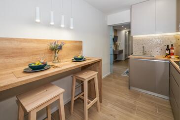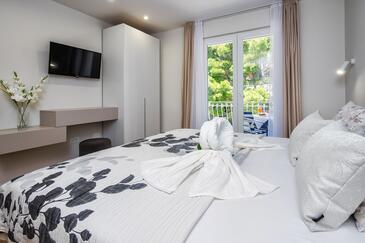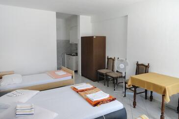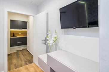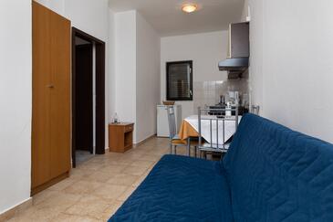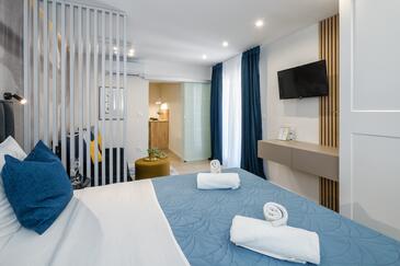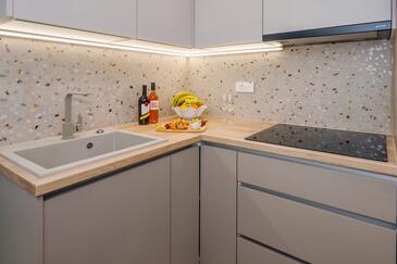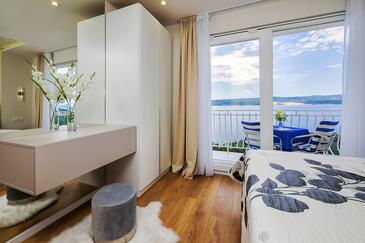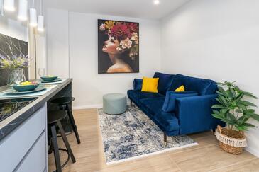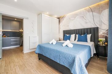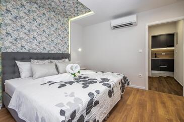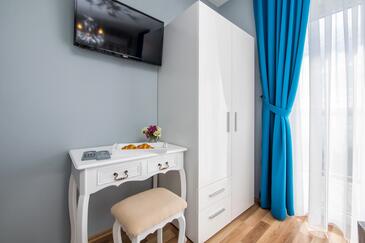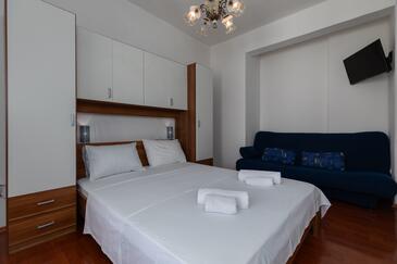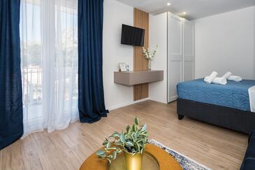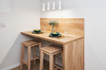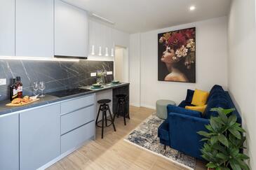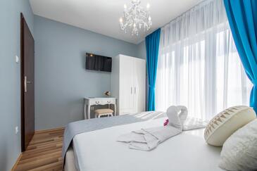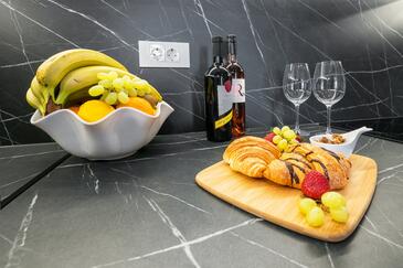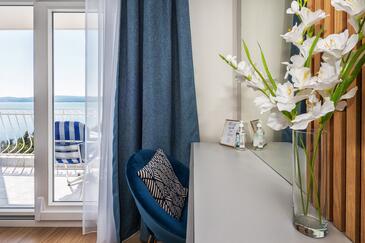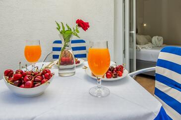 Ferienwohnung bietet Platz für 2 Gäste. Die Betten sind in Schlafzimmern, die es 1 gibt, innerhalb einer Gesamtfläche von 32m2, angeordnet. Die Gäste haben einen eigenen Balkon zur Verfügung, auf der sie in warmen Sommernächten genießen können. Das Apartment bietet Meerblick. Es ist erlaubt, Speisen auf dem Gemeinschafts-Grill vorzubereiten.