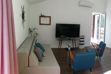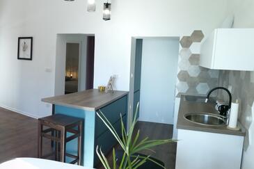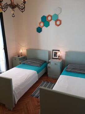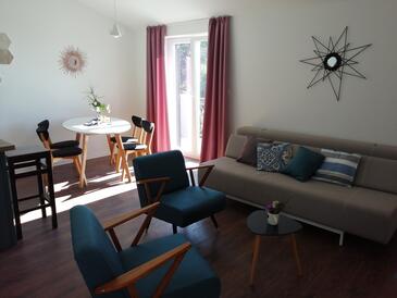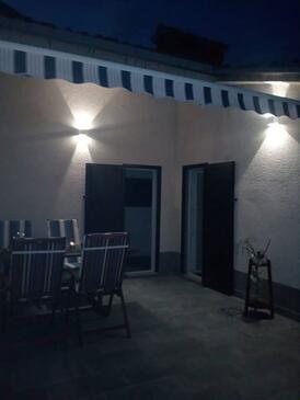 Ferienwohnung bietet Platz für 8 Gäste. Die Betten sind in Schlafzimmern, die es 3 gibt, und in Wohnzimmer, innerhalb einer Gesamtfläche von 88m2, angeordnet. Die Gäste haben einen eigenen Balkon zur Verfügung, auf der sie in warmen Sommernächten genießen können. Das Apartment bietet Meerblick. Es ist erlaubt, Speisen auf dem Gemeinschafts-Grill vorzubereiten. In der Unterkunftseinheit besteht die Möglichkeit des Mitbringens von Haustieren gegen Aufpreis.