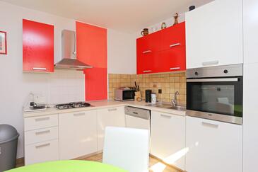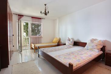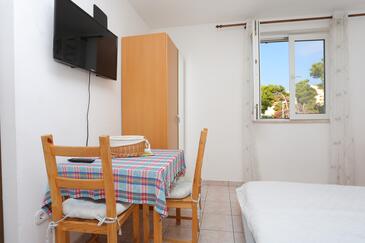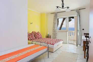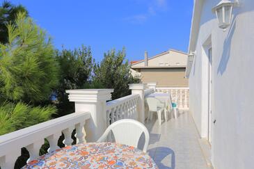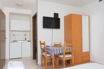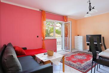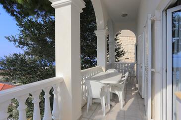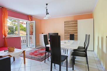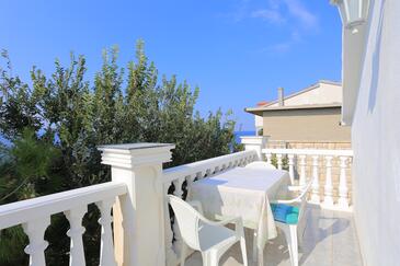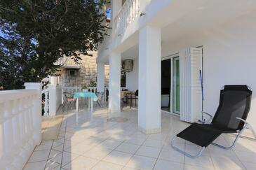 Ferienwohnung bietet Platz für 8 Gäste. Die Betten sind in Schlafzimmern, die es 2 gibt, und in Wohnzimmer, innerhalb einer Gesamtfläche von 80m2, angeordnet. Die Gäste haben eine eigene Terrasse zur Verfügung, auf der sie in warmen Sommernächten genießen können. Das Apartment bietet Meerblick. Es ist erlaubt, Speisen auf dem Gemeinschafts-Grill vorzubereiten.