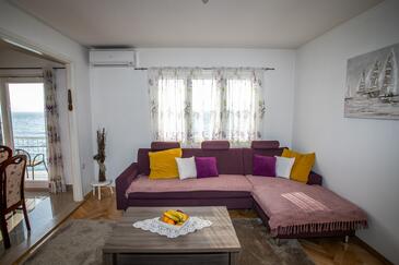 Ferienwohnung bietet Platz für 6 Gäste. Die Betten sind in Schlafzimmern, die es 3 gibt, innerhalb einer Gesamtfläche von 89m2, angeordnet. Die Gäste haben einen eigenen Balkon zur Verfügung, auf der sie in warmen Sommernächten genießen können. Das Apartment bietet Meerblick. Es ist erlaubt, Speisen auf dem Gemeinschafts-Grill vorzubereiten. Räume der gebuchten Unterkunftseinheit werden nicht in eine Ganze verbunden.