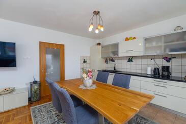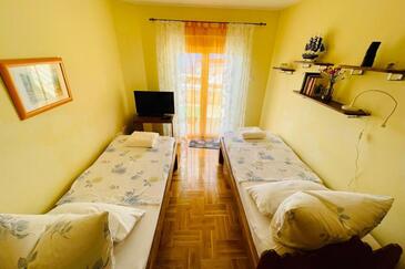 Ferienwohnung bietet Platz für 5 Gäste. Die Betten sind in Schlafzimmern, die es 2 gibt, und in Wohnzimmer, innerhalb einer Gesamtfläche von 60m2, angeordnet. Die Gäste haben eine eigene Terrasse zur Verfügung, auf der sie in warmen Sommernächten genießen können. Das Apartment bietet Meerblick.