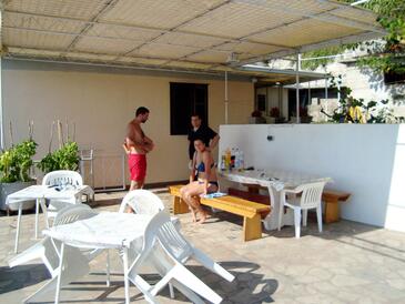 Ferienwohnung bietet Platz für 11 Gäste. Die Betten sind in Schlafzimmern, die es 3 gibt, und in Wohnzimmer, innerhalb einer Gesamtfläche von 90m2, angeordnet. Die Gäste haben eine eigene Terrasse zur Verfügung, auf der sie in warmen Sommernächten genießen können. Das Apartment bietet Meerblick. Für vollen Genuss und Entspannung gibt es einen privaten Grill für Gäste dieser Unterkunft.