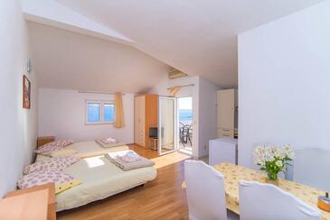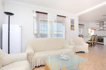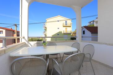 Ferienwohnung bietet Platz für 4 Gäste. Die Betten sind in Schlafzimmern, die es 1 gibt, und in Wohnzimmer, innerhalb einer Gesamtfläche von 35m2, angeordnet. Die Gäste haben eine eigene Terrasse zur Verfügung, auf der sie in warmen Sommernächten genießen können. Das Apartment bietet Meerblick. Es ist erlaubt, Speisen auf dem Gemeinschafts-Grill vorzubereiten.