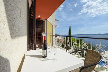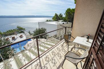 Ferienwohnung bietet Platz für 6 Gäste. Die Betten sind in Schlafzimmern, die es 2 gibt, und in Wohnzimmer, innerhalb einer Gesamtfläche von 67m2, angeordnet. Die Gäste haben einen eigenen Balkon zur Verfügung, auf der sie in warmen Sommernächten genießen können. Das Apartment bietet Meerblick. Es ist erlaubt, Speisen auf dem Gemeinschafts-Grill vorzubereiten. Während ihres Aufenthalts können Gäste das gemeinsam zur Nutzung stehende Schwimmbad benutzen. In der Unterkunftseinheit besteht die Möglichkeit des Mitbringens von Haustieren gegen Aufpreis.