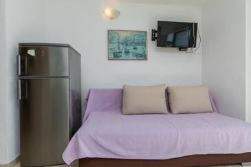 Ferienwohnung bietet Platz für 4 Gäste. Die Betten sind in Schlafzimmern, die es 1 gibt, und in Wohnzimmer, innerhalb einer Gesamtfläche von 38m2, angeordnet. Die Gäste haben einen eigenen Balkon zur Verfügung, auf der sie in warmen Sommernächten genießen können. Das Apartment bietet Meerblick. Es ist erlaubt, Speisen auf dem Gemeinschafts-Grill vorzubereiten.