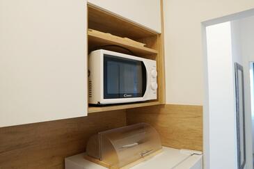 Ferienwohnung bietet Platz für 5 Gäste. Die Betten sind in Schlafzimmern, die es 2 gibt, und in Wohnzimmer, innerhalb einer Gesamtfläche von 42m2, angeordnet. Die Gäste haben eine eigene Terrasse zur Verfügung, auf der sie in warmen Sommernächten genießen können. Das Apartment bietet Meerblick. Es ist erlaubt, Speisen auf dem Gemeinschafts-Grill vorzubereiten. Unterkunftseinheit hat Räume, die von dem Rest der Einheit abgetrennt werden.