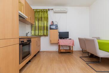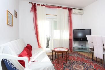 Ferienwohnung bietet Platz für 6 Gäste. Die Betten sind in Schlafzimmern, die es 2 gibt, und in Wohnzimmer, innerhalb einer Gesamtfläche von 52m2, angeordnet. Die Gäste haben einen eigenen Balkon zur Verfügung, auf der sie in warmen Sommernächten genießen können. Das Apartment bietet Meerblick. Es ist erlaubt, Speisen auf dem Gemeinschafts-Grill vorzubereiten. Die reservierte Unterkunftseinheit verfügt über einen gemeinsame Terrasse. Räume der gebuchten Unterkunftseinheit werden nicht in eine Ganze verbunden. Unterkunftseinheit hat Räume, die von dem Rest der Einheit abgetrennt werden. Eingang in die Unterkunftseinheit ist nicht mit einer Tür von anderen Räumen des Objektes getrennt.