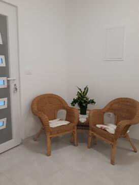 Ferienwohnung bietet Platz für 4 Gäste. Die Betten sind in Schlafzimmern, die es 1 gibt, und in Esszimmer, innerhalb einer Gesamtfläche von 28m2, angeordnet. Die Gäste haben eine eigene Terrasse zur Verfügung, auf der sie in warmen Sommernächten genießen können. Das Apartment bietet Meerblick. Es ist erlaubt, Speisen auf dem Gemeinschafts-Grill vorzubereiten.