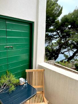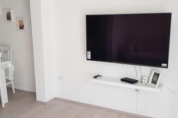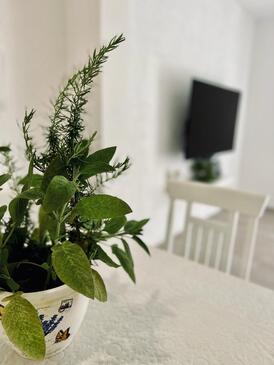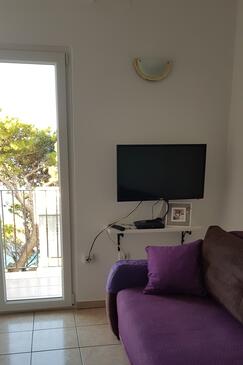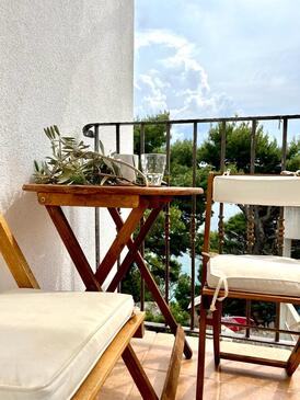 Ferienwohnung bietet Platz für 4 Gäste. Die Betten sind in Schlafzimmern, die es 1 gibt, und in Wohnzimmer, innerhalb einer Gesamtfläche von 47m2, angeordnet. Die Gäste haben eine eigene Terrasse zur Verfügung, auf der sie in warmen Sommernächten genießen können. Das Apartment bietet Meerblick. Es ist erlaubt, Speisen auf dem Gemeinschafts-Grill vorzubereiten.