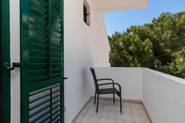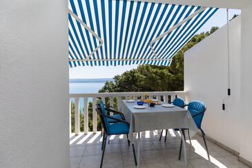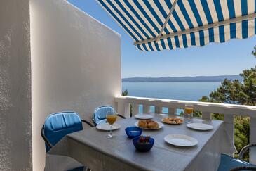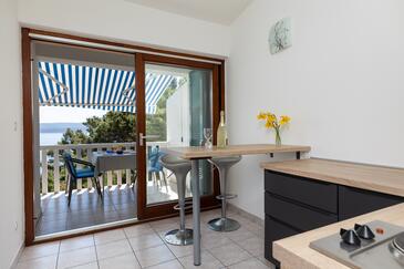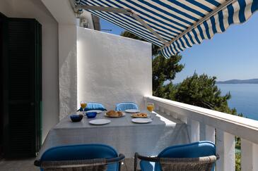 Ferienwohnung bietet Platz für 5 Gäste. Die Betten sind in Schlafzimmern, die es 2 gibt, innerhalb einer Gesamtfläche von 41m2, angeordnet. Die Gäste haben eine eigene Terrasse zur Verfügung, auf der sie in warmen Sommernächten genießen können. Das Apartment bietet Meerblick. Es ist erlaubt, Speisen auf dem Gemeinschafts-Grill vorzubereiten.