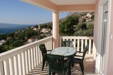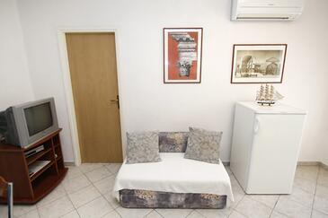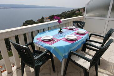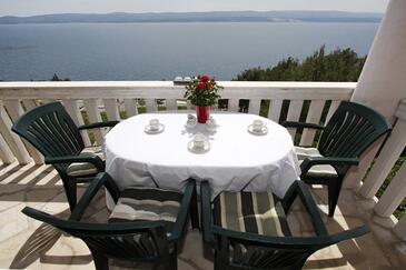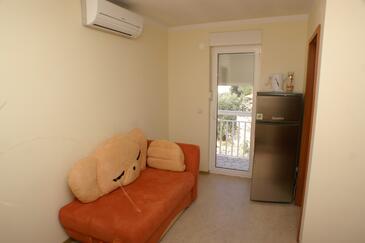 Ferienwohnung bietet Platz für 5 Gäste. Die Betten sind in Schlafzimmern, die es 2 gibt, und in Wohnzimmer, innerhalb einer Gesamtfläche von 38m2, angeordnet. Die Gäste haben eine eigene Terrasse zur Verfügung, auf der sie in warmen Sommernächten genießen können. Das Apartment bietet Meerblick. Es ist erlaubt, Speisen auf dem Gemeinschafts-Grill vorzubereiten. Während ihres Aufenthalts können Gäste das gemeinsam zur Nutzung stehende Schwimmbad benutzen.