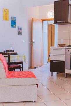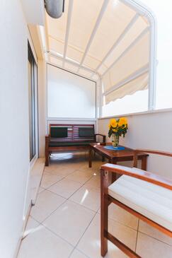 Ferienwohnung bietet Platz für 2 Gäste. Die Betten sind in Schlafzimmern, die es 1 gibt, innerhalb einer Gesamtfläche von 29m2, angeordnet. Die Gäste haben eine eigene Terrasse zur Verfügung, auf der sie in warmen Sommernächten genießen können. Das Apartment bietet Meerblick. Es ist erlaubt, Speisen auf dem Gemeinschafts-Grill vorzubereiten.