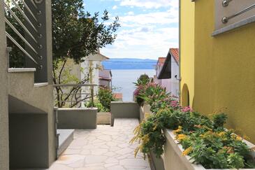 Ferienwohnung bietet Platz für 4 Gäste. Die Betten sind in Schlafzimmern, die es 1 gibt, und in Esszimmer, innerhalb einer Gesamtfläche von 31m2, angeordnet. Die Gäste haben eine eigene Terrasse zur Verfügung, auf der sie in warmen Sommernächten genießen können. Das Apartment bietet Meerblick. Es ist erlaubt, Speisen auf dem Gemeinschafts-Grill vorzubereiten.