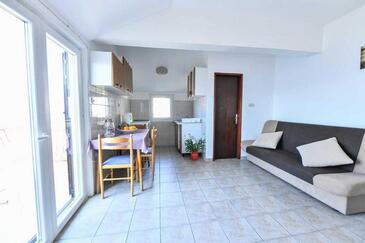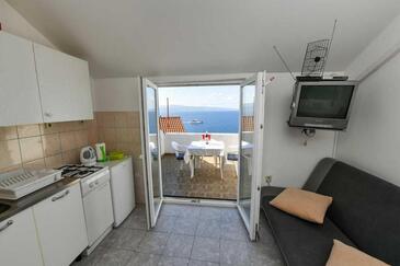 Ferienwohnung bietet Platz für 4 Gäste. Die Betten sind in Schlafzimmern, die es 1 gibt, und in Wohnzimmer, innerhalb einer Gesamtfläche von 27m2, angeordnet. Die Gäste haben eine eigene Terrasse zur Verfügung, auf der sie in warmen Sommernächten genießen können. Das Apartment bietet Meerblick.