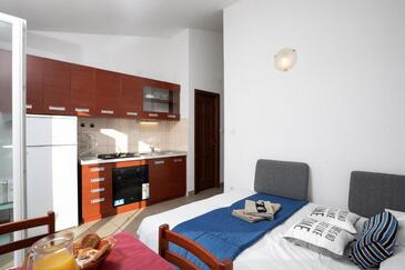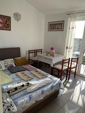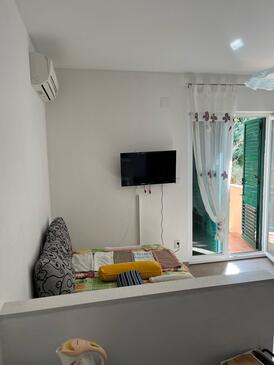 Ferienwohnung bietet Platz für 5 Gäste. Die Betten sind in Schlafzimmern, die es 1 gibt, und in Wohnzimmer, innerhalb einer Gesamtfläche von 31m2, angeordnet. Die Gäste haben einen eigenen Balkon zur Verfügung, auf der sie in warmen Sommernächten genießen können. Das Apartment bietet Meerblick. Es ist erlaubt, Speisen auf dem Gemeinschafts-Grill vorzubereiten.