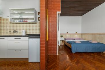 Ferienwohnung bietet Platz für 4 Gäste. Die Betten sind in Schlafzimmern, die es 1 gibt, und in Wohnzimmer, innerhalb einer Gesamtfläche von 33m2, angeordnet. Die Gäste haben eine eigene Terrasse zur Verfügung, auf der sie in warmen Sommernächten genießen können. Das Apartment bietet Meerblick. Es ist erlaubt, Speisen auf dem Gemeinschafts-Grill vorzubereiten. In der Unterkunftseinheit besteht die Möglichkeit des Mitbringens von Haustieren gegen Aufpreis.