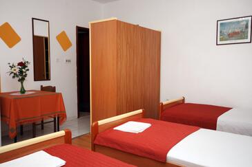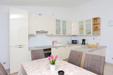 Ferienwohnung bietet Platz für 10 Gäste. Die Betten sind in Schlafzimmern, die es 4 gibt, innerhalb einer Gesamtfläche von 99m2, angeordnet. Die Gäste haben eine eigene Terrasse zur Verfügung, auf der sie in warmen Sommernächten genießen können. Das Apartment bietet Meerblick. Es ist erlaubt, Speisen auf dem Gemeinschafts-Grill vorzubereiten. In der Unterkunftseinheit besteht die Möglichkeit des Mitbringens von Haustieren gegen Aufpreis.