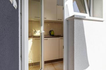 Ferienwohnung bietet Platz für 5 Gäste. Die Betten sind in Schlafzimmern, die es 1 gibt, und in Wohnzimmer, innerhalb einer Gesamtfläche von 33m2, angeordnet. Die Gäste haben eine eigene Terrasse zur Verfügung, auf der sie in warmen Sommernächten genießen können. Es ist erlaubt, Speisen auf dem Gemeinschafts-Grill vorzubereiten.