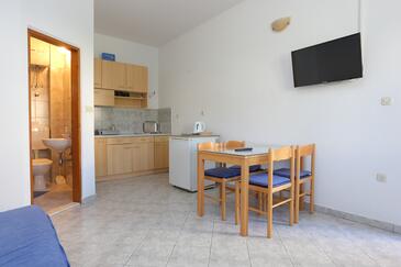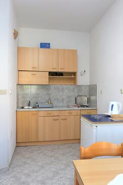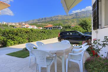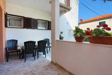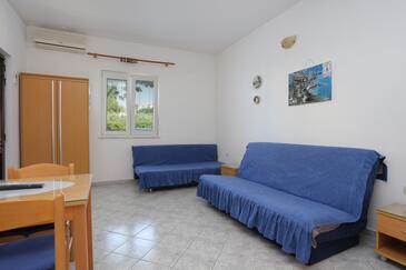 Ferienwohnung bietet Platz für 6 Gäste. Die Betten sind in Schlafzimmern, die es 3 gibt, innerhalb einer Gesamtfläche von 78m2, angeordnet. Die Gäste haben eine eigene Terrasse zur Verfügung, auf der sie in warmen Sommernächten genießen können. Das Apartment bietet Meerblick. Es ist erlaubt, Speisen auf dem Gemeinschafts-Grill vorzubereiten.