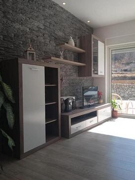 Haus bietet Platz für 6 Gäste. Die Betten sind in Schlafzimmern, die es 2 gibt, und in Wohnzimmer, innerhalb einer Gesamtfläche von 57m2, angeordnet. Die Gäste haben einen eigenen Balkon zur Verfügung, auf der sie in warmen Sommernächten genießen können.